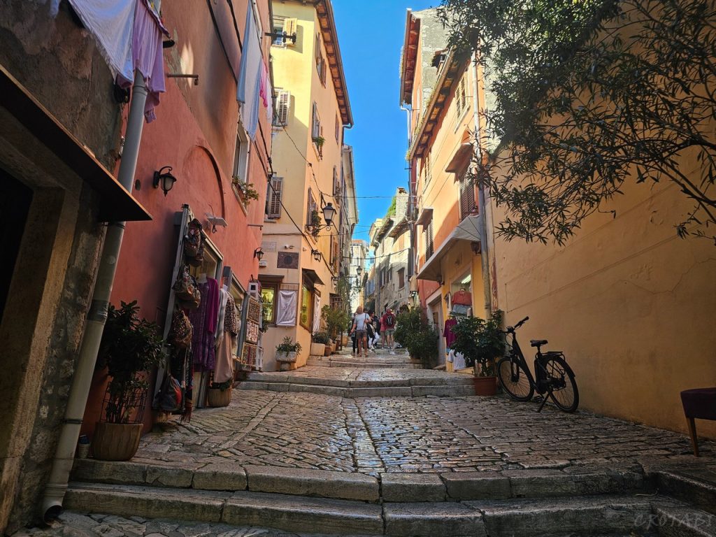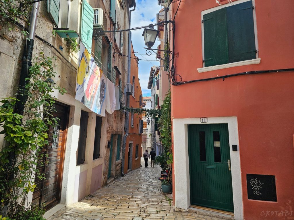 ロヴィニ旧市街はでこぼこした石畳の道、坂道、そして階段が多い街です。特に丘のてっぺんにある聖エウフェミア教会に近いお宿は、ずっと坂道を登ってアクセスすることとなります。