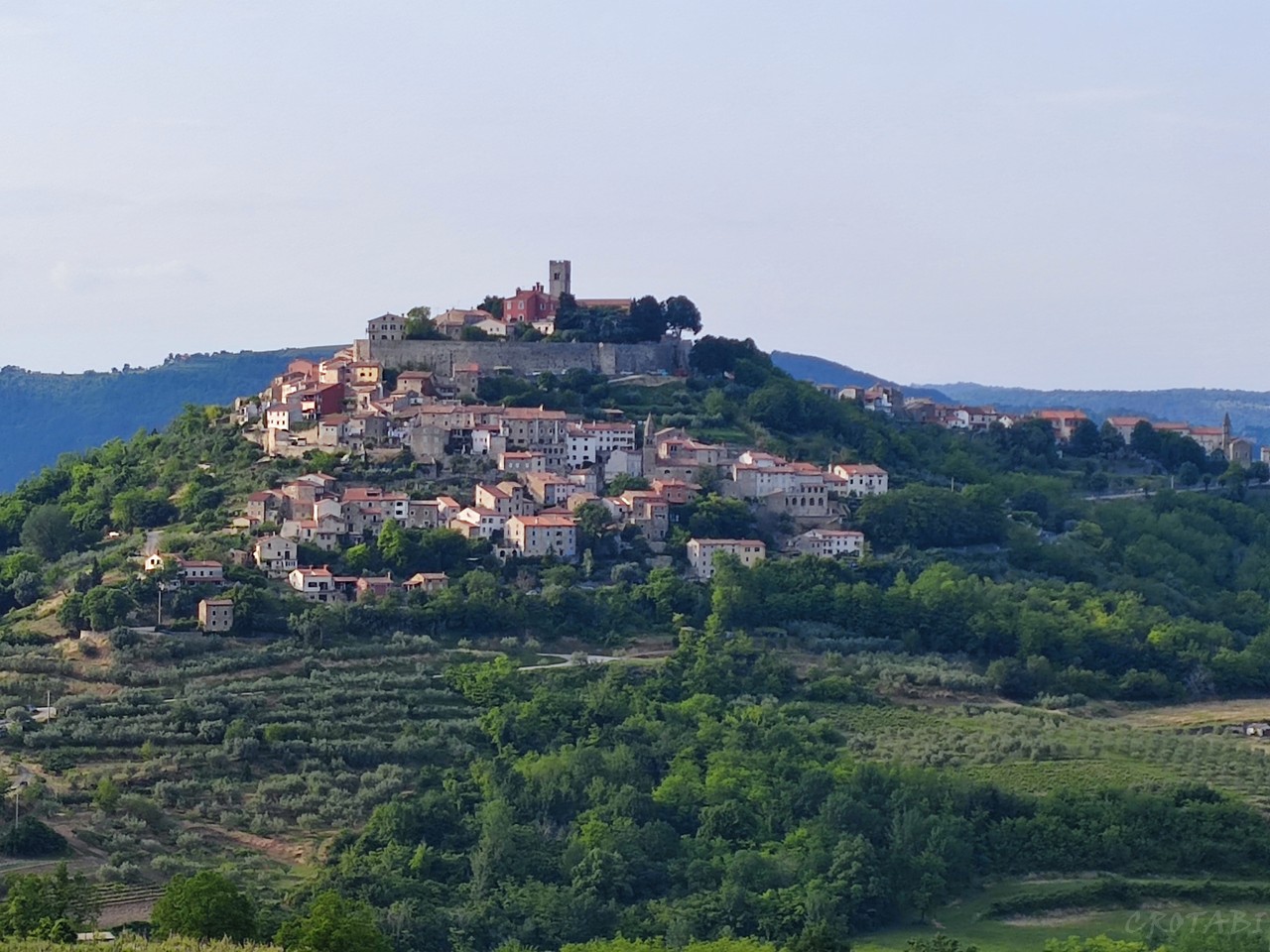 ぶどう畑が広がる、なだらかな土地に突如現れる、小高い丘の上に築かれた「天空の街」モトブン(Motovun)。
