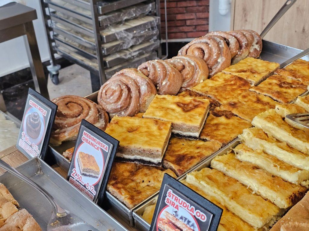 おすすめはもちろん、看板メニューの焼き立てのシュトゥルクリ(1個2€)。(※茹でたシュトゥルクリ(štrukli kuhani)もありますが、イチ押しは焼きシュトゥルクリ(štrukli pečeni)です)