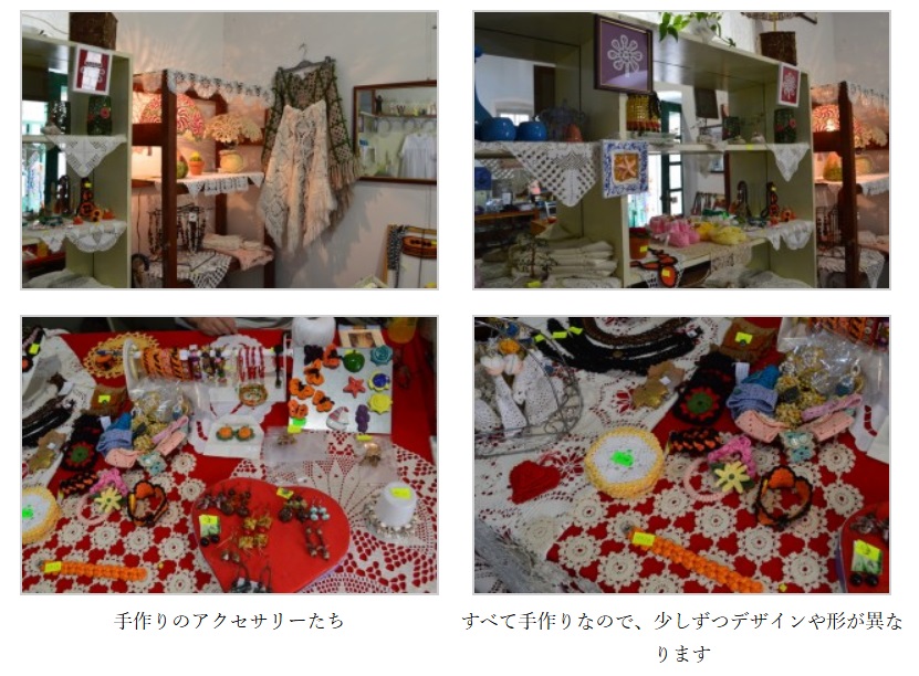 そこで「こんにちは!」とニコニコ出迎えてくれたのは、レース編みをしながらお店番をしていたマリツァ(Marica)さん。マリツァさんが座っているテーブルの前や後ろには、マリツァさんのお手製のレース製品やアクセサリーがずらりと並んでいました。