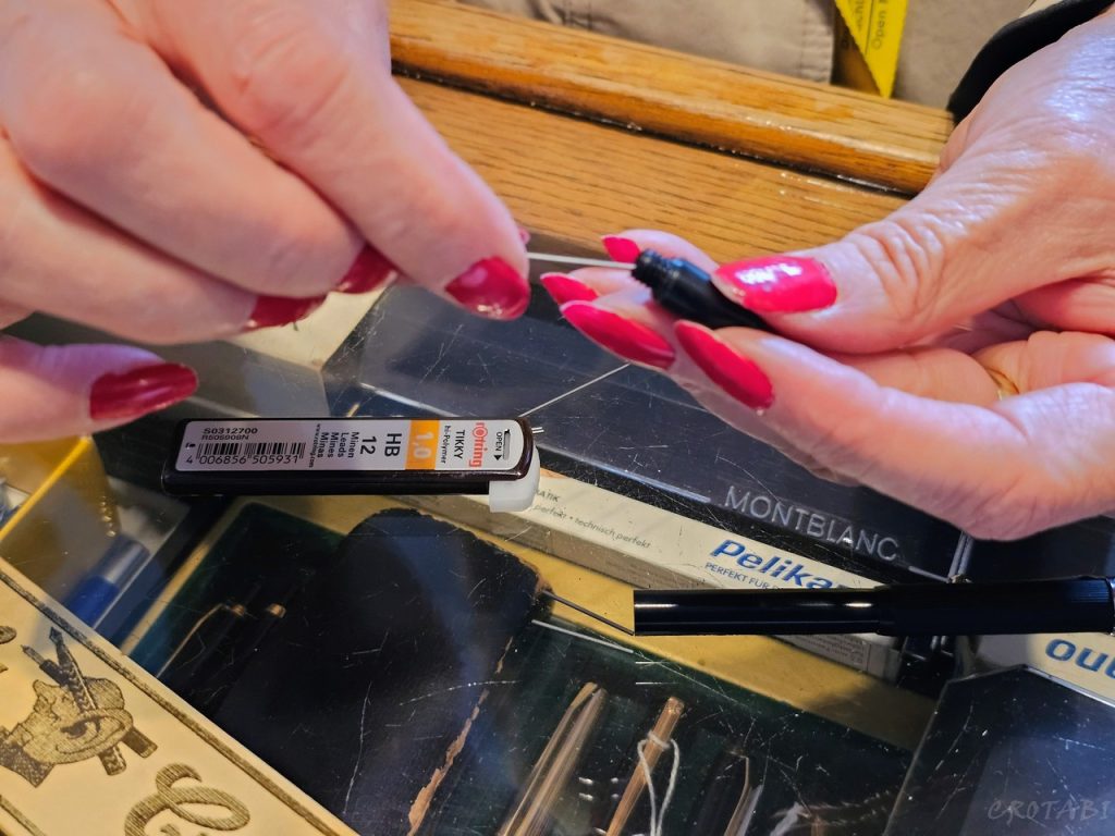 この工房では、万年筆の修理以外にも『スラヴォリュブ・ペンカラが発明した世界初のノック式技術鉛筆(シャーペン)のレプリカ(上の写真)』の販売も行っており、それを求めて訪れる文房具愛好家の旅人が跡を絶えない隠れた名店なのです。