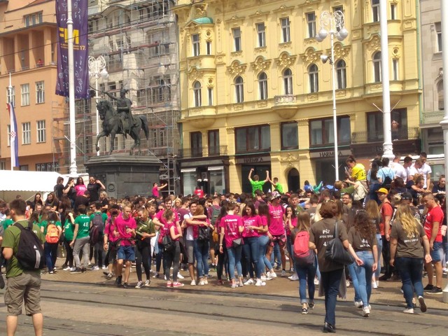 筆者は11時半頃から用事があったので、正午の広場の様子を見届けることはできませんでしたが、12時になるとザグレブ市長さんから祝辞があり、そのあとはDJがプレイする音楽に合わせてますます盛り上がっていったようです(DJはザグレブ市が若者のためにアレンジしたそうです)。